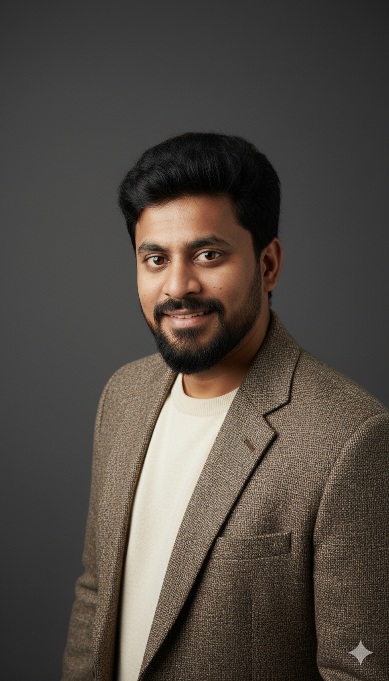 Edit this image. I need a professional, high-resolution, profile photo, maintaining the exact facial structure, identity, and key features of the person in the input image. The subject is framed from the chest up, with ample headroom and negative space above their head, ensuring the top of their head is not cropped. The person looks directly at the camera with a thoughtful, intellectual expression, and the subject's body is positioned with a slight thoughtful tilt. They are styled for a professional photo studio shoot, wearing a classic tweed sport coat over a cream-colored sweater. The background is a solid '#141414' neutral studio. Shot from a high angle with bright and airy soft, diffused studio lighting, gently illuminating the face and creating a subtle catchlight in the eyes, conveying a sense of wisdom and expertise. Captured on an 85mm f/1.8 lens with a shallow depth of field, exquisite focus on the eyes, and beautiful, soft bokeh. Observe crisp detail on the fabric texture of the tweed, individual strands of hair, and natural, realistic skin texture. The atmosphere exudes confidence, intellectual authority, and academic professionalism. Clean and bright cinematic color grading with subtle warmth and balanced tones, ensuring a polished and contemporary feel.
