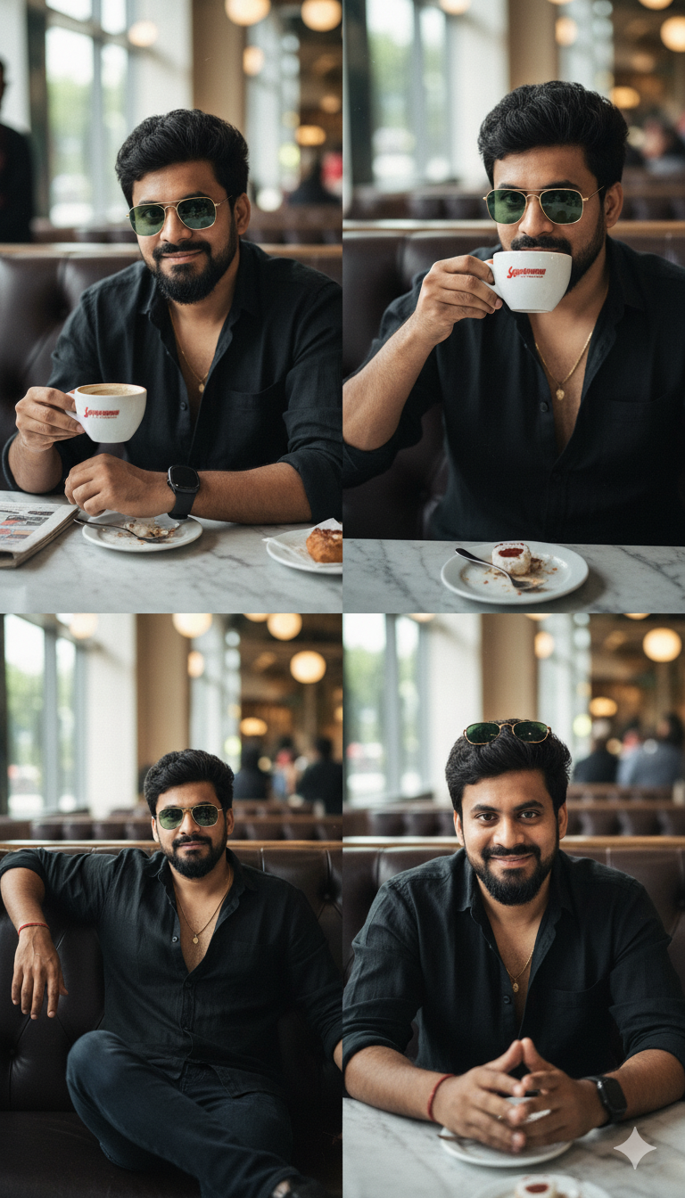 Ultra-realistic editorial photo of a woman (face from reference photo, unchanged). She wears a green sweatshirt with white flower prints on the sleeves, beige wide pants, white cat resting on the girl's shoulder and white chunky sneakers with yellow accents. Head tilted slightly with a gentle smile. Background mix of a flower tree